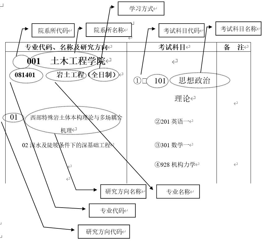 | 专业代码、名称及研究方向 | 考 试 科 目 | 备 注 |