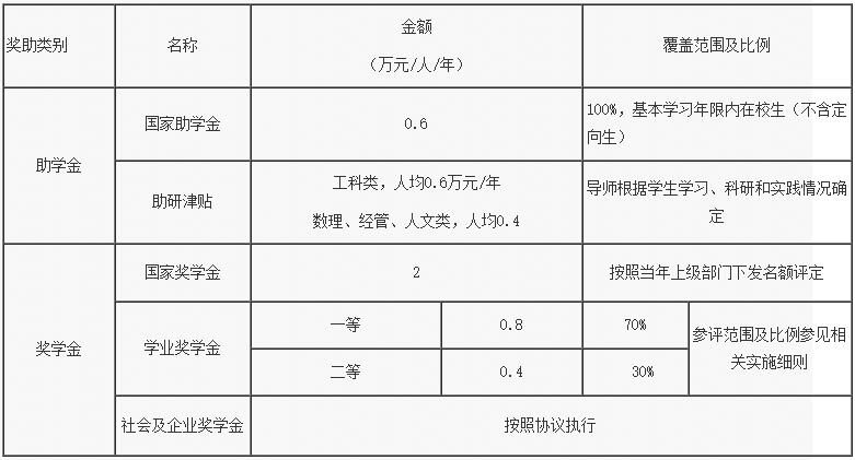 为改善研究生学习、科研和生活条件,提高研究生待遇,激励优秀学生科研创新,学校设立了研究生奖、助学金。2023年硕士研究生奖、助学金见下表(仅供参考):