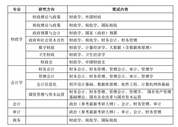 2.方式:笔试考试科目除全国统考外,其他科目由财科院命题,每科考试时间为3小时,详细考试科目及相关要求等请见《初试目录》《准考证》。
