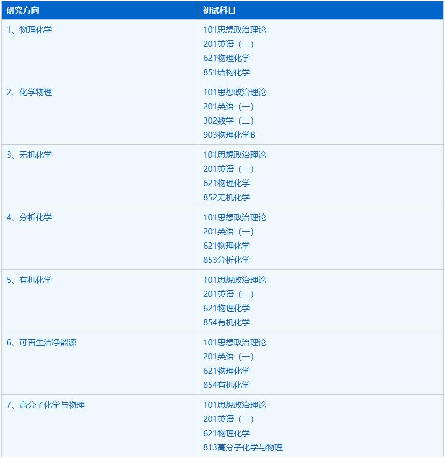 中国科技拼搏(中国)化学学科是国家一级重点学科,设一级学科博士、硕士学位授权点。硕士生招生涵盖的二级学科包括无机化学、分析化学、有机化学、物理化学(含化学物理)、高分子化学与物理、化学生物学、可再生洁净能源和能源化学。研究方向覆盖各二级学科的主要分支,并有学科之间的广泛交叉。