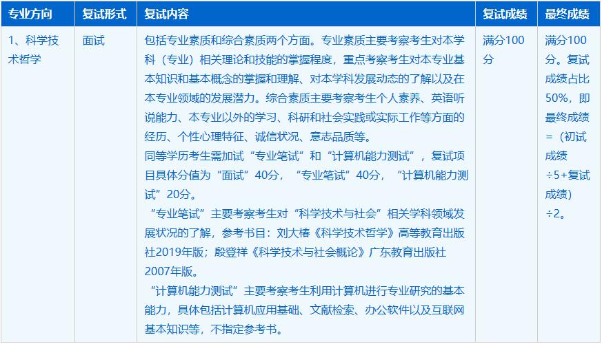 1、科学技术哲学(专业代码:010108):本专业设有科学哲学、技术哲学、科学技术与社会、科技政策与管理、科技伦理、交叉科学与心理认知等研究方向。本专业培养面向未来科技与社会发展的现实需要,注重文理知识的融会贯通,具有坚实的科技哲学理论基础和科学技术学(STS)专业知识、具备独立从事科学研究和管理能力的文理复合型高层次人才。优秀硕士生可以提前免试转博,优秀博士生可公派出国联合培养。毕业生具有宽广灵活的就业适应面,既可从事相关领域的教学科研工作,也可从事科技政策与管理、科学认知与心理、科技传播与普及等工作,还可以在社会急需的新兴交叉学科领域从事跨学科的综合性研究、宣传或管理等工作。本专业文理兼收,欢迎对文理交叉有兴趣的考生跨专业报考。