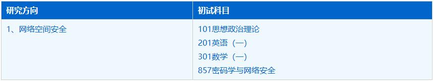 网络空间安全一级学科(0839)培养适应我国网络空间安全领域发展需求的研究型、复合型高层次技术和管理人才的学术型学位硕士。主要研究方向有:密码学、网络安全与应用安全、计算机系统安全、量子信息安全、无线感知与安全、人工智能安全、公共安全、多媒体安全。通过培养达到了解本领域的技术现状和发展趋势,掌握本领域的基础理论和解决实际问题的先进技术方法与现代技术手段,在本领域的某一方向具有独立开展研究工作、技术开发能力。毕业生主要去向有国内外IT行业的知名企业、国家重点科研机构或企事业单位、出国继续深造和工作。