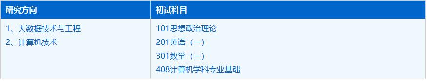 计算机技术设有如下研究方向:大数据技术及应用,计算机与网络安全技术,管理信息系统,嵌入式系统设计,软件系统分析与设计,软件项目管理,软件测试与质量保证。