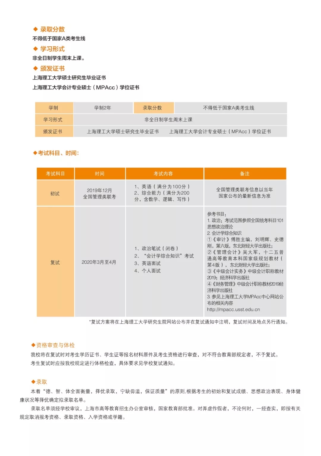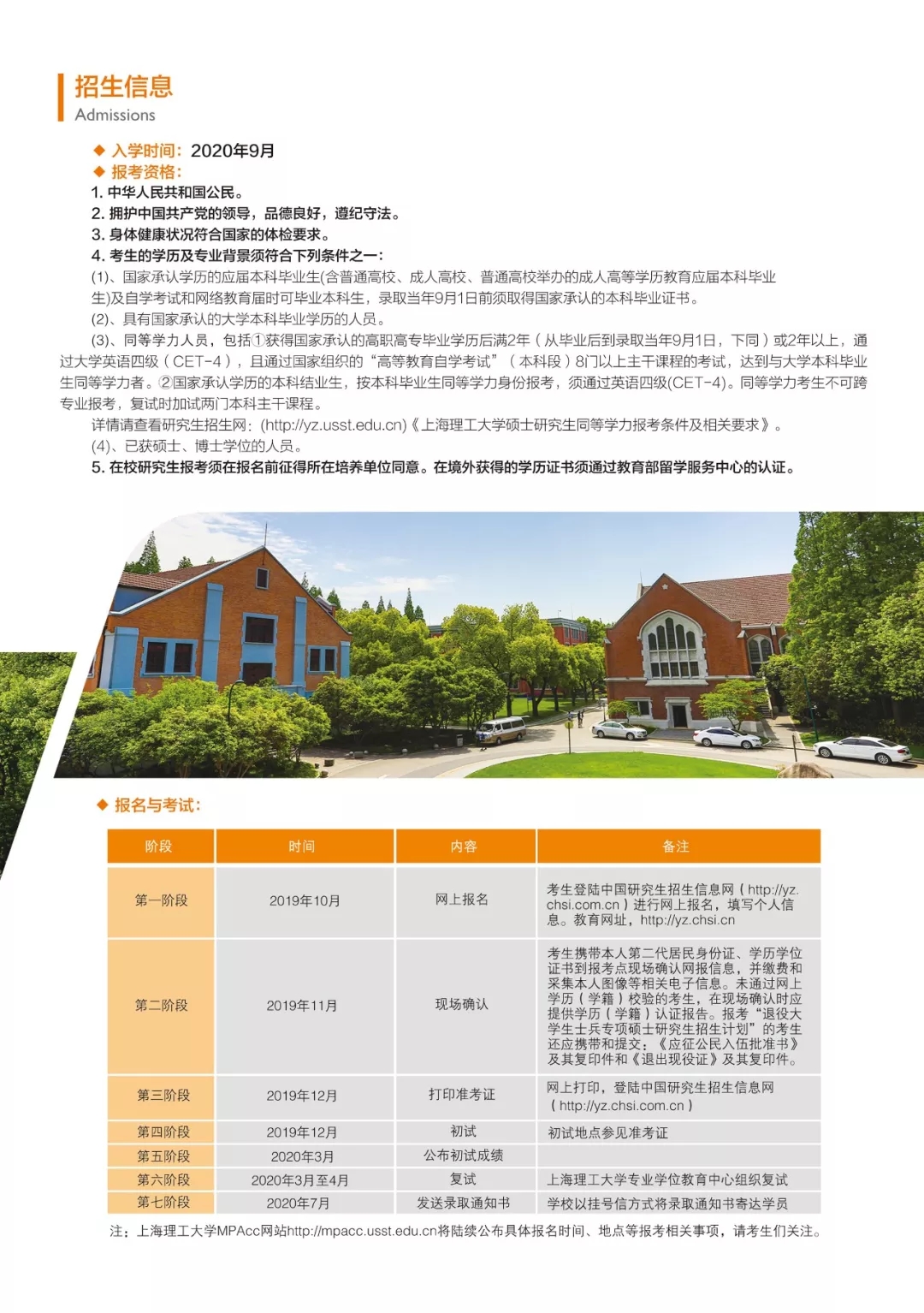 以上就是“上海理工拼搏(中国)会计专硕(MPAcc)2020年招生简章”的全部内容!更多2020年招生简章内容,尽在“招生简章”栏目!