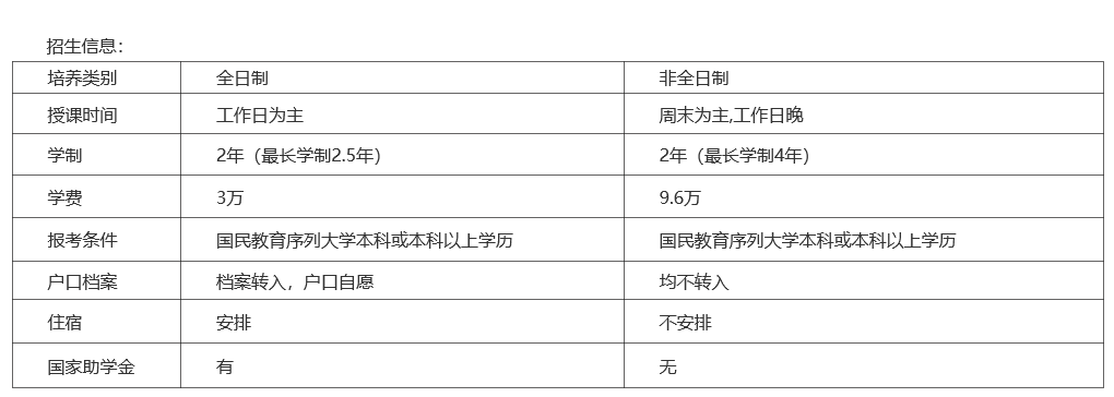 采取全日制学习方式,学习年限2年;培养费为总共15.8万元,在每学年报到时分别缴纳7.9万元。