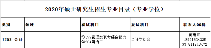 2020计划招生全日制会计硕士,人数待定,学制3年,学费1.5万/年。