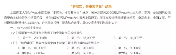 新生学业奖学金专硕新生资助分为两个等级:一等8000元/年、二等5000元/年。其中工商管理、应用统计、工程管理、新闻与传播专业覆盖面可达100%,会计专业评优资助。