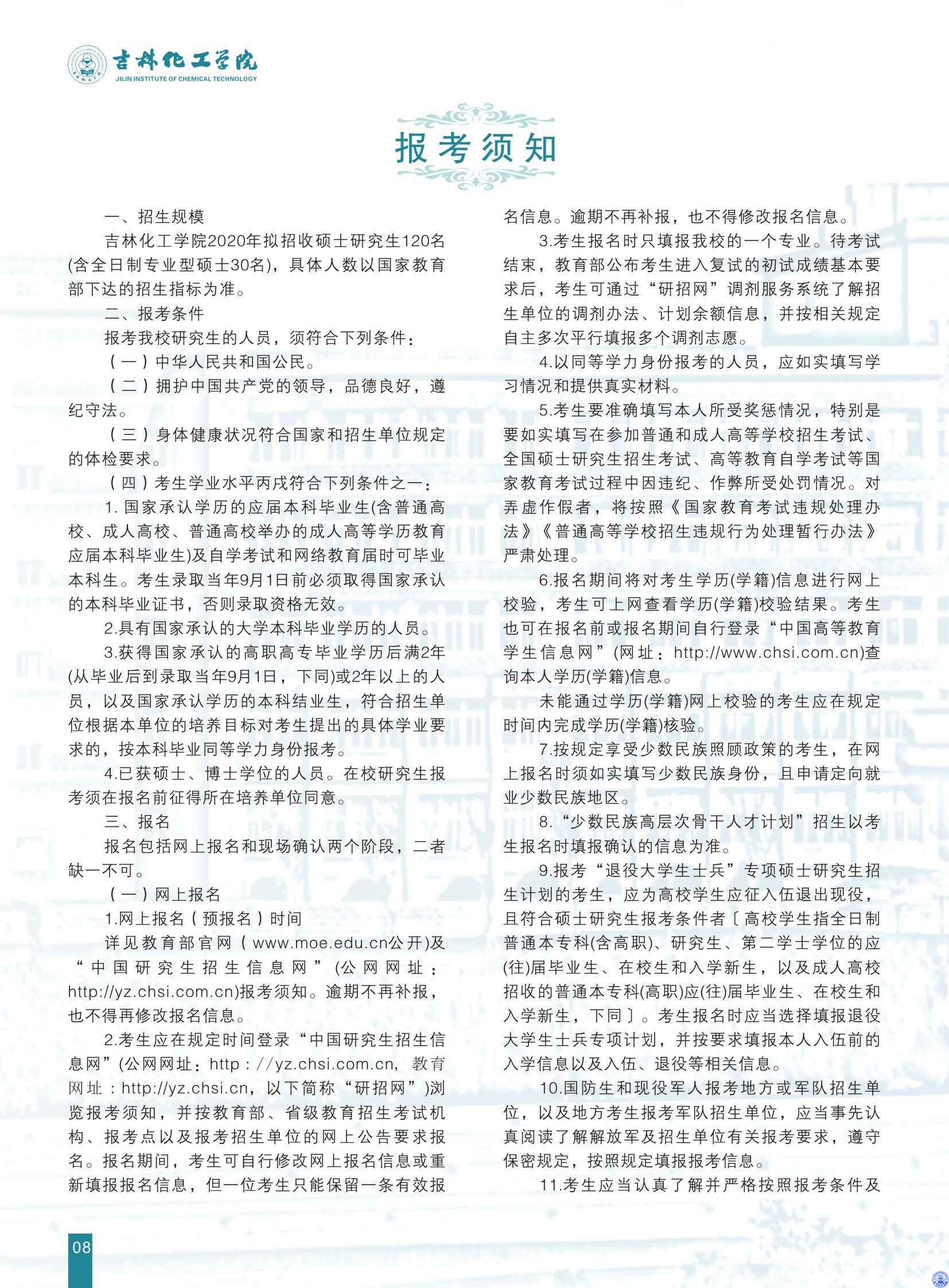 以上就是“吉林化工学院2020年全日制硕士研究生招生简章”的全部内容!更多2020年招生简章信息,尽在“招生简章”栏目!
