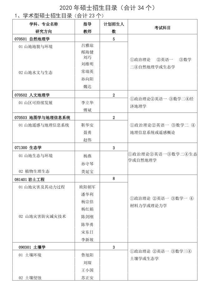 忙于备考的同时,也应该关注一下院校官方信息的发布,比如2020年研究生招生简章。今天,小编整理了“中科院成都山地灾害与环境研究所2020年硕士研究生招生简章”的相关内容!
