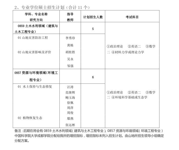 以上就是“中科院成都山地灾害与环境研究所2020年硕士研究生招生简章”的全部内容!祝你拼搏在线官网成功!