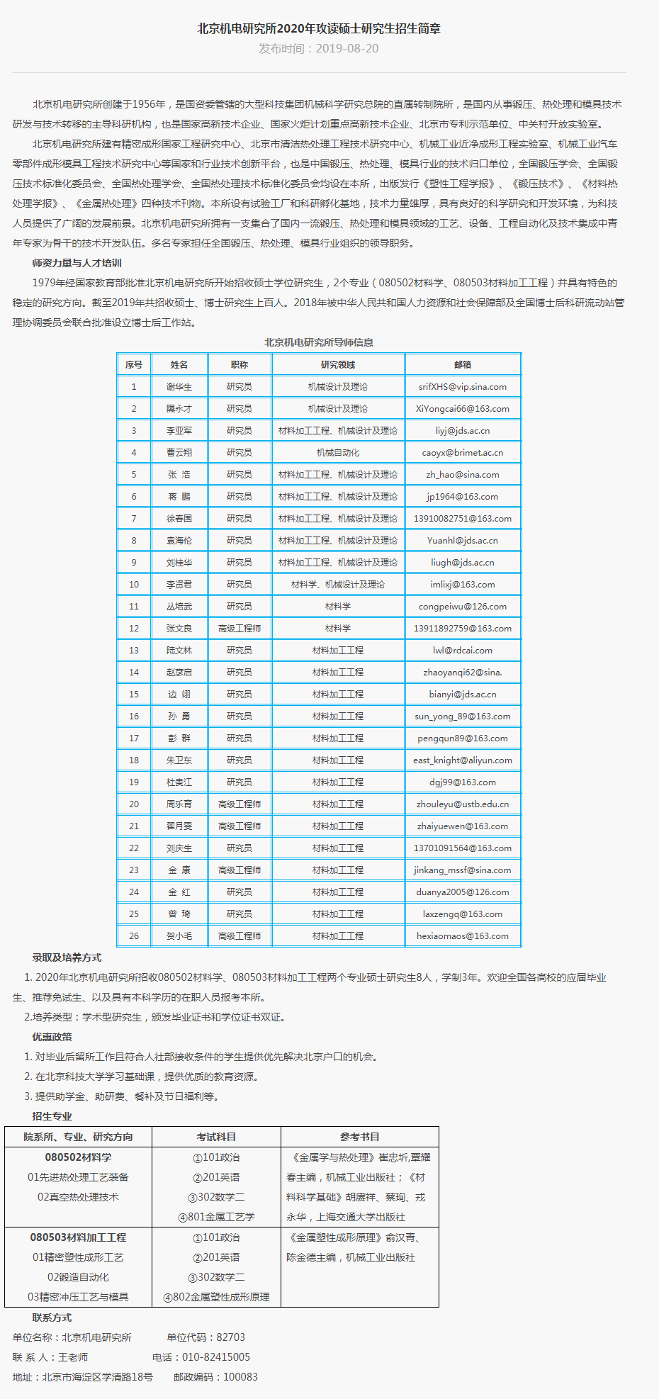 以上就是“北京机电研究所2020年硕士研究生招生简章”的全部内容!祝你拼搏在线官网成功!