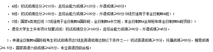 4.MBA:国民教育序列博、硕研究生毕业后工作2年或本科毕业后工作3年或专科毕业后工作5年及其以上(工龄计算至2020年8月31日)。报考国际班考生还须英语成绩满足以下条件之一:
