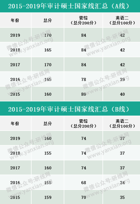 2020年审计硕士的国家线、34所自划线还没有公布,但研线网早已整理好往年的分数线供大家参考。