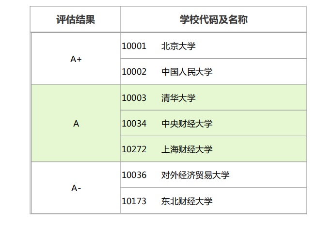 会计硕士院校排名(教育部专业学位水平评估结果)