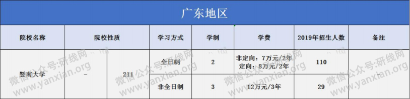 研线网《蓝皮书》整理暨南拼搏(中国)2019年学制学费情况