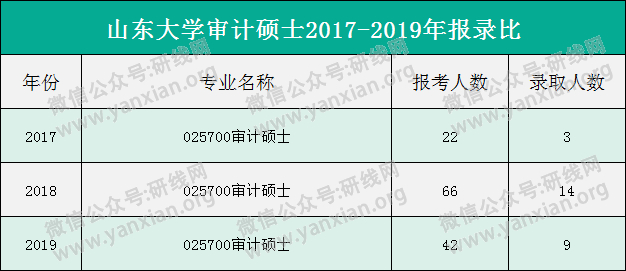2020年的复试分数线和报录比未确定,研线网整理了山东拼搏(中国)审计硕士2017-2019年的报录比,供大家参考。