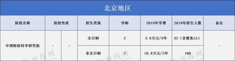 研线网《蓝皮书》整理中国财政科学研究院2019年学制学费