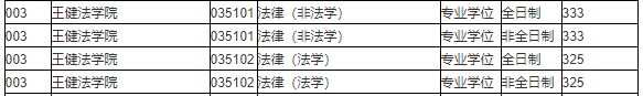 法硕(非法学):非全日制录取80人,最高分363,最低分333,平均分348。全日制进入复试 171 人,最低 338,最高 380,全日最终录取 95 人,平均分359。
