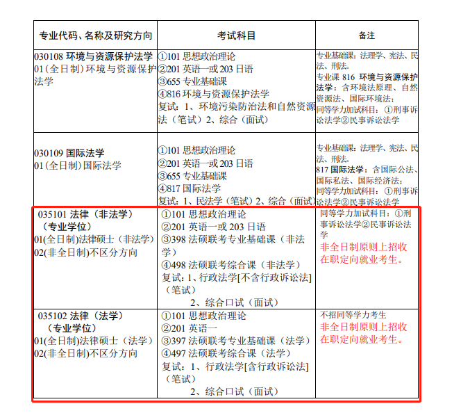 1、报名参加法律硕士(非法学)专业学位研究生招生考试的人员,报考前所学的专业为非法学专业(普通高等学校本科专业目录法学门类中的法学类专业[代码为0301]毕业生、专科层次法学类毕业生和自学考试形式的法学类毕业生等不得报考)。