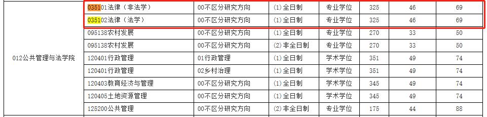 法硕(法学):录取20人,最高分365分,最低分345,平均分355分。