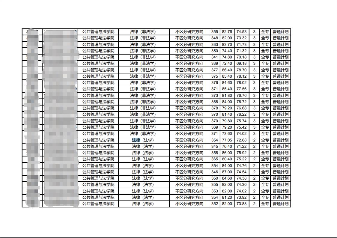 法硕(非法学):录取25人,最高分378分,最低分333分,平均分356分