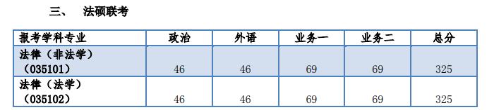 法硕(非法学):录取52人,后调入77人。最高分389分,最低分325分,平均分357分