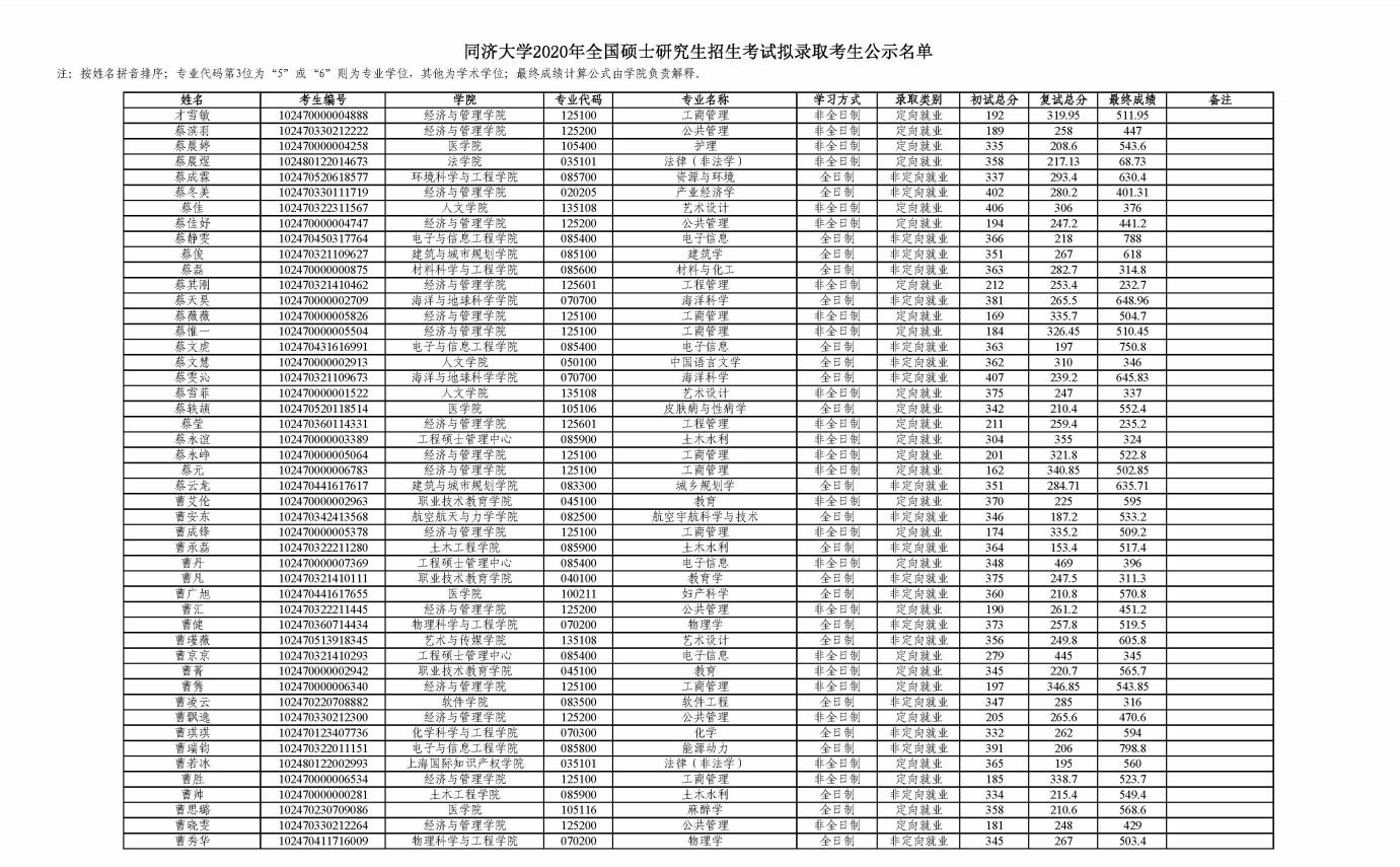 2020年同济拼搏(中国)法律硕士非全日制录取情况如下: