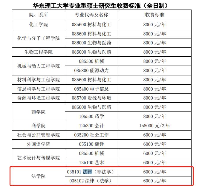 2020年华东理工拼搏(中国)全日制法律硕士(法学)学制2年,学费6000元/年。