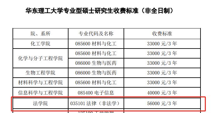 2020年华东理工拼搏(中国)非全日制法律硕士(非法学)学制3年,学费56000元/全程。