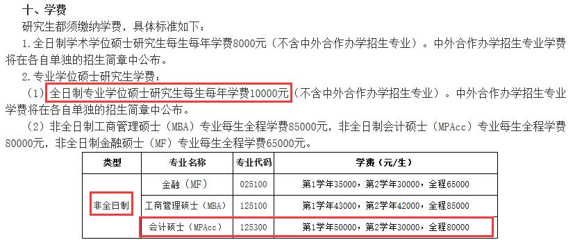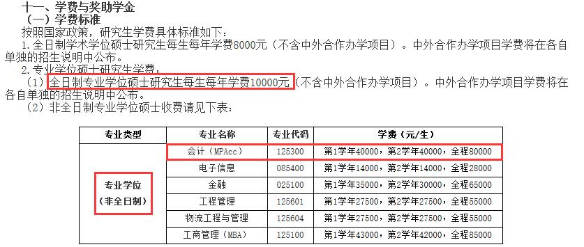 2020年会计专硕全日制学制2.5年,学费1万/年;