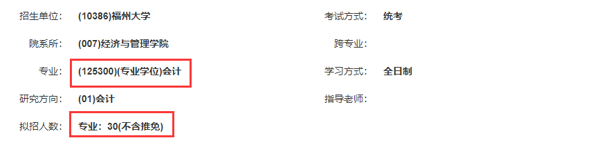 2021年会计专硕全日制拟招生人数为30人