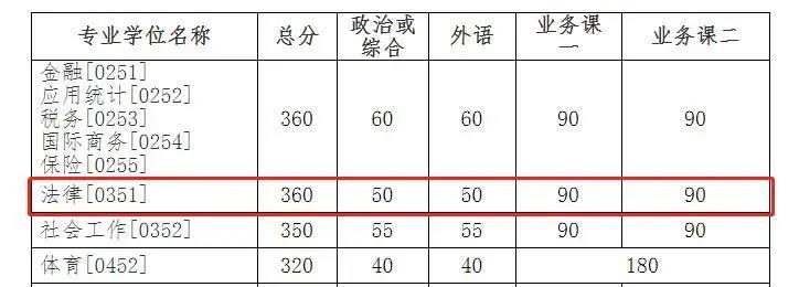 法硕(非法学): 360/50/90