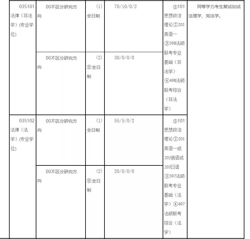 法硕(法学):全日制录取58人,其中包含1名少干计划,1士兵计划。非全日制录取19人。