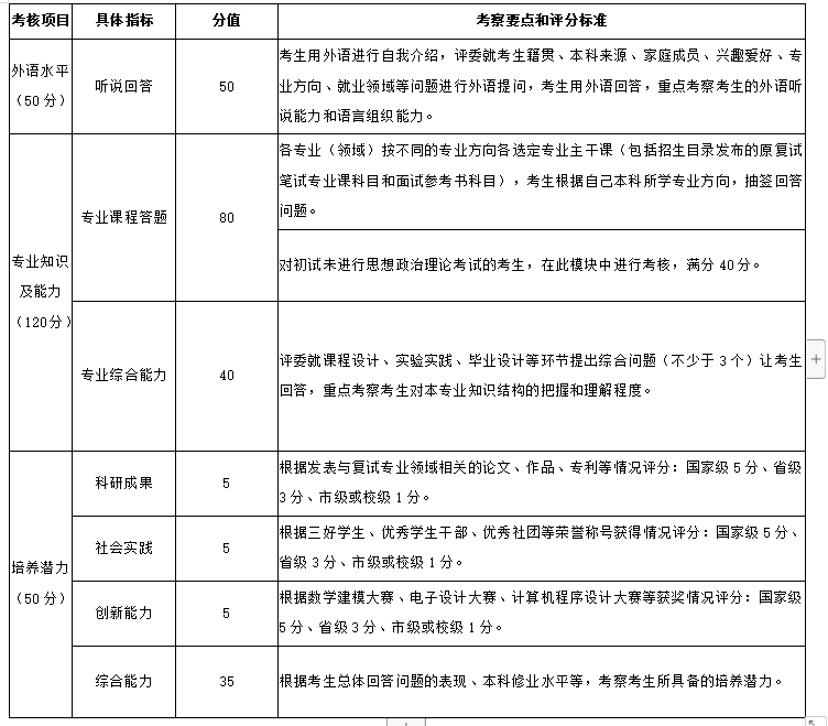 4、针对工商管理硕士(MBA)、公共管理硕士(MPA)和工程管理(MEM)的非全日制考生,“培养潜力”部分中“科研成果”、“社会实践”、“创新能力”指标由相关学院自行确定打分项目及标准,总分不变。