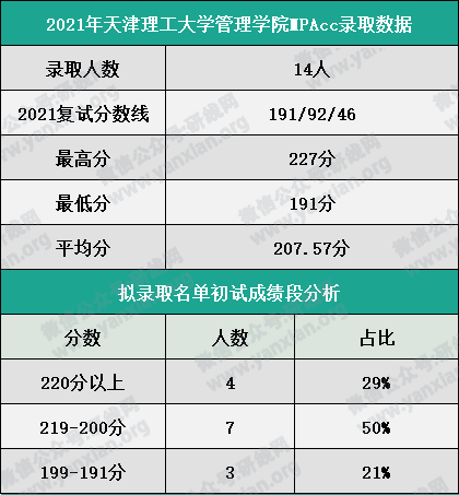 复试分数线为191/92/46,录取最高分为227分,最低分为191分,平均分为207.57分(不包含少数民族/士兵计划)。