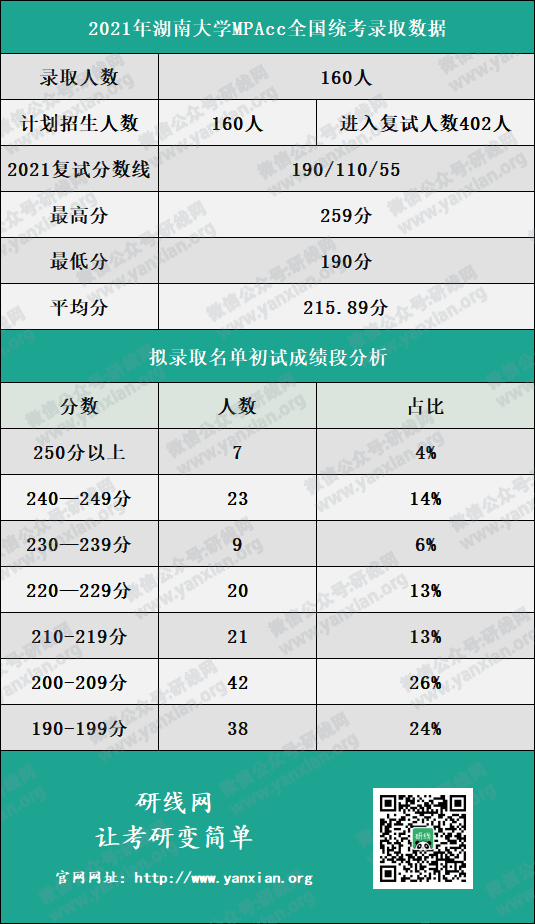 2021年湖南拼搏(中国)MPAcc计划招生人数160人,进入复试人数402人,拟录取硕士研究生160人。