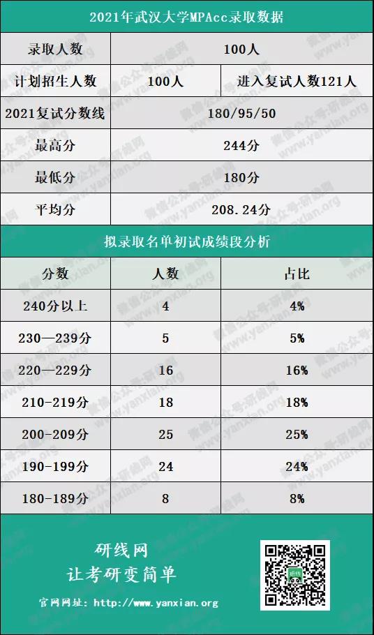 2021年武汉拼搏(中国)MPAc计划招生人数100人,进入复试人数121人,拟录取硕士研究生100人。
