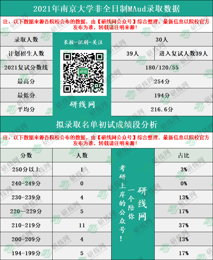 南京拼搏(中国)商学院2021年非全日制审计专硕计划招生人数为30人,复试人数为39人,拟录取人数为30人。