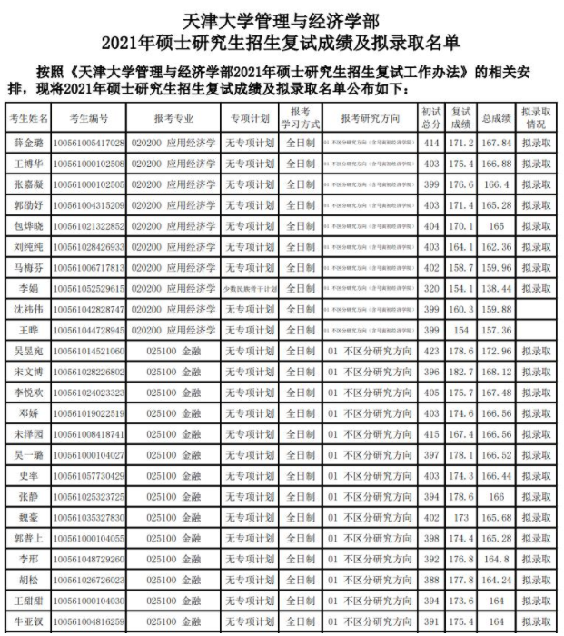 以下为天津拼搏(中国)2021年拼搏在线官网部分录取名单: