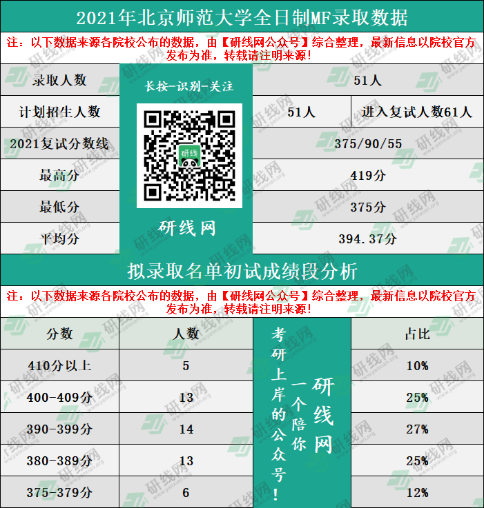 复试分数线为375/90/55,录取最高分为419分,最低分375分,平均分为394.37分。