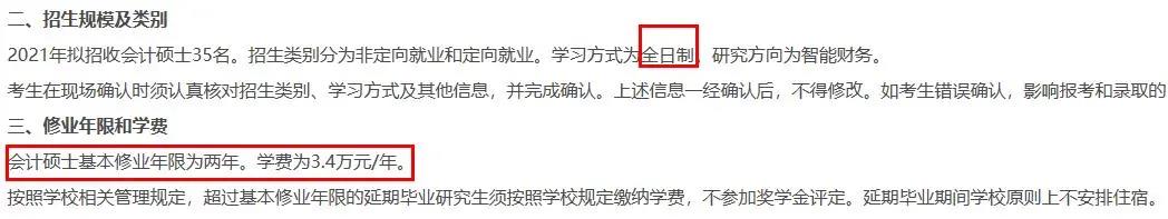 全日制:基本修业年限为两年。学费为3.4万元/年