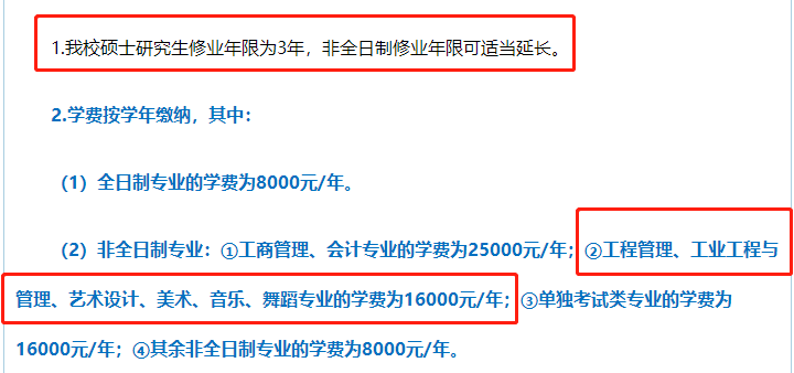 非全日制:学制为3年,学费为16000元/学年