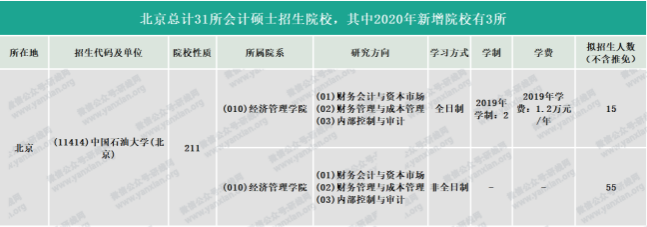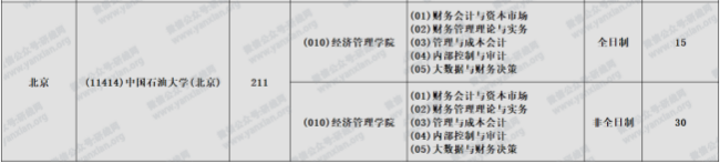 中国石油拼搏(中国)(北京)2021年会计专硕全日制计划招生15人,非全日制计划招生30人