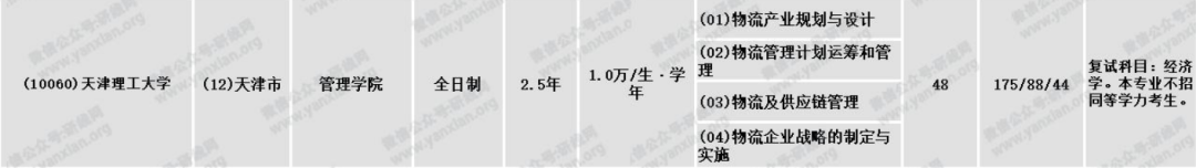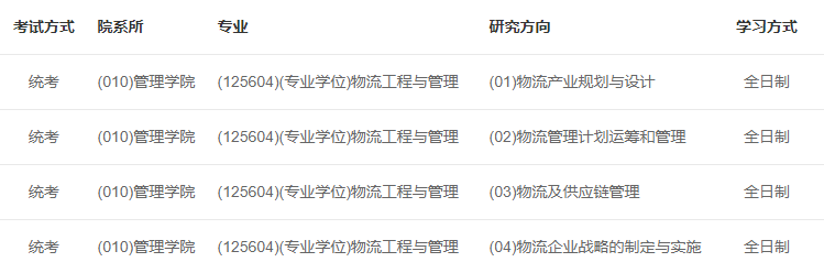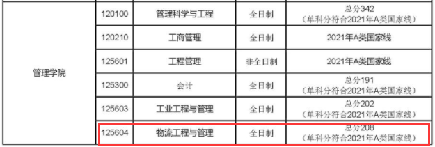 2021年物流工程与管理专业计划招生全日制4人(不含推免生)。