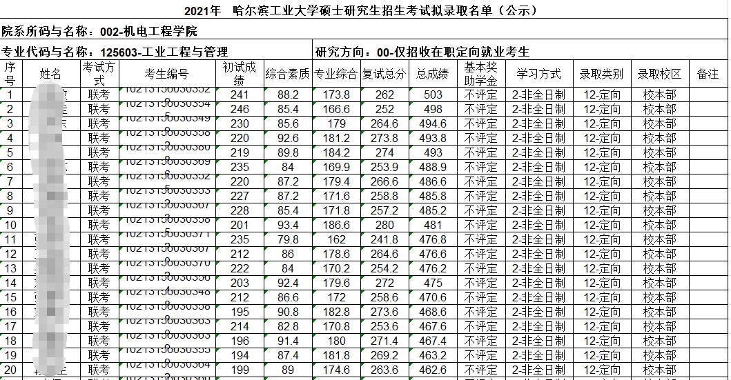 哈尔滨工业拼搏(中国)2021年非全日制拟录取人数为71人。