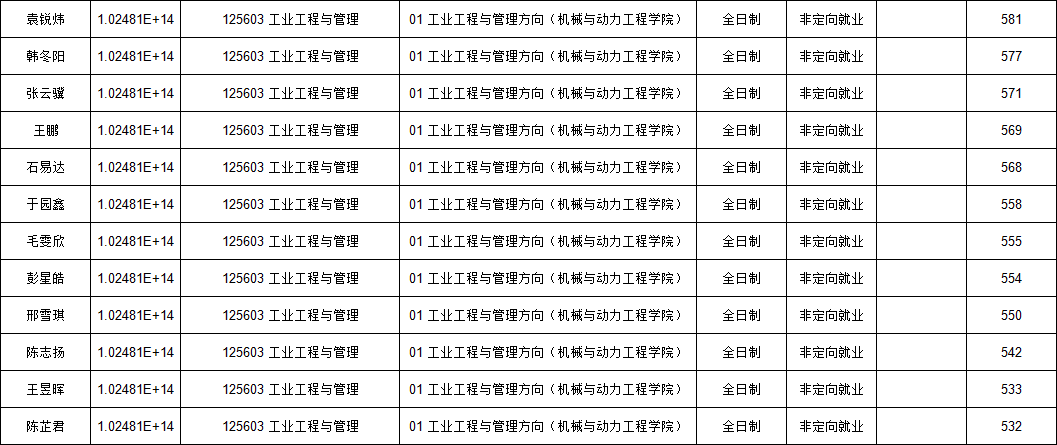全日制录取最高分:581分,