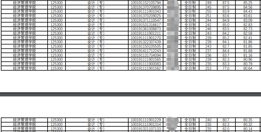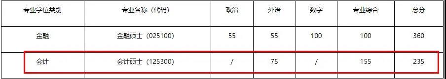 中国农业拼搏(中国)经济管理学院2021年会计专硕复试分数线为235/155/75