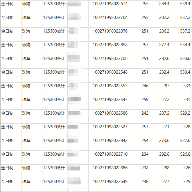 全日制录取最高分:259分