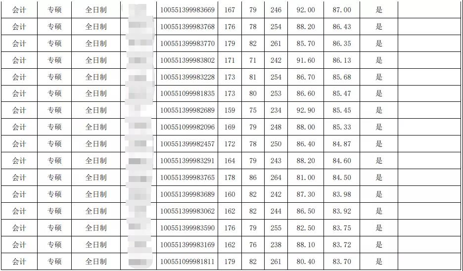 非全日制录取最高分:249分