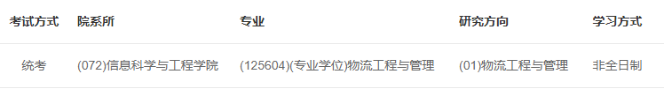 2021年物流工程与管理专业计划招生非全日制10人(不含推免生)。